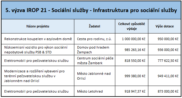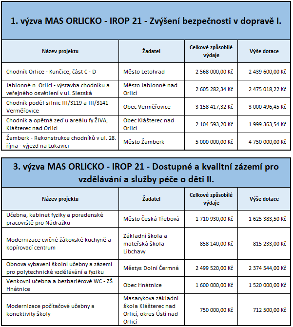 Aktuálně máme celkem 74 projektů, jejich žadatelé v současné době již obdrželi informaci, že jejich projektový záměr byl podpořen dotačními prostředky a nyní pro vás budují multifunkční učebny, bezbariérové školy či zázemí sociálních služeb.