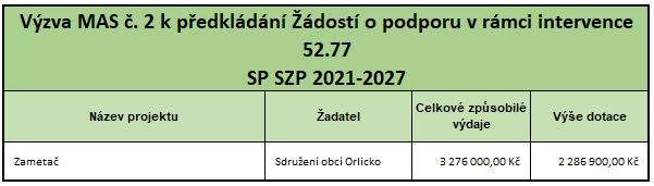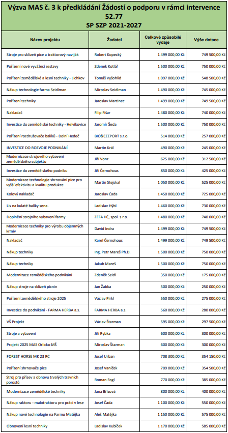 Níže uvedené projekty jsou aktuálně realizovány podpořenými žadateli ze Strategického plánu Společné zemědělské politiky. Po úspěšném ukončení realizace projektů žadateli (tj. po proplacení dotace) je bude možné zhlédnout v sekci: „Úspěšně ukončené projekty“.