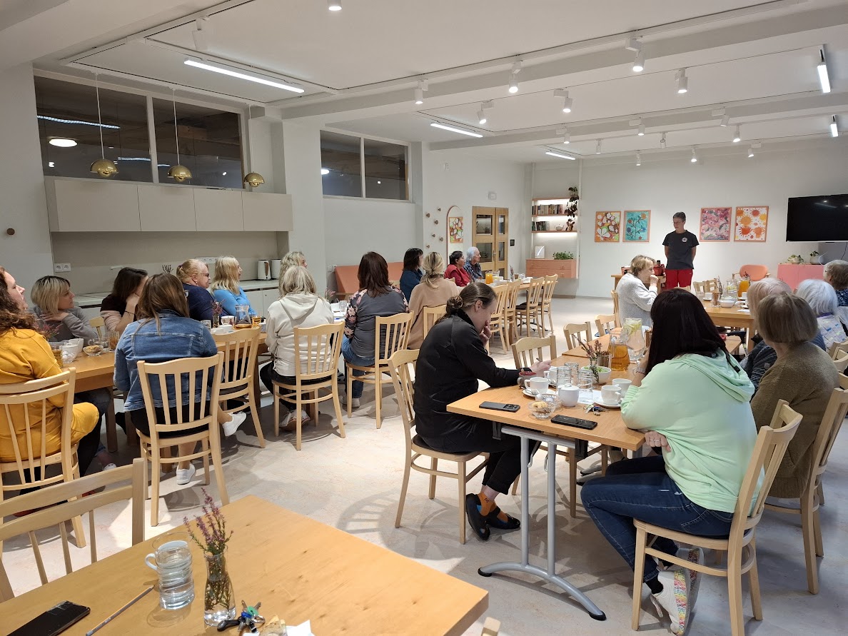 Také se nám daří podporovat neformálně pečující skupinovou formou. V dubnu 2025 jsme zorganizovali přednášku s besedou na téma pomoci lidem se zrakovým postižením s názvem „Poslepu na vlastní kůži“. Lektorkou byla paní ředitelka TyfloCentra Hradec Králové Mgr. Dagmar Balcarová. Témata přednášky: druhy zrakového postižení, možnost vyzkoušení simulačních brýlí, zásady správné komunikace se zrakově postiženými – jak nabídnout pomoc, předsudky, mýty, jaké mají zrakově postižení možnosti, co mohou využít, jaké jsou bariéry pro zrakově postižené a jak je překonáváme, předvedení orientačních prvků – orientační hlasový majáček a vysílačka, hmatové prvky, asistivní technologie – jaké jsou, jaké dávají možnosti, kdo s nimi poradí. Součástí přednášky byla i následná beseda, možnost dotazů, ukázka konkrétních pomůcek s výkladem jejich použití. Přišli lidé, kteří pečují o své blízké i zájemci z řad veřejnosti.