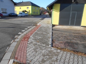Stezka pro pěší a cyklisty je přizpůsobena osobám s omezenou schopností pohybu a orientace.