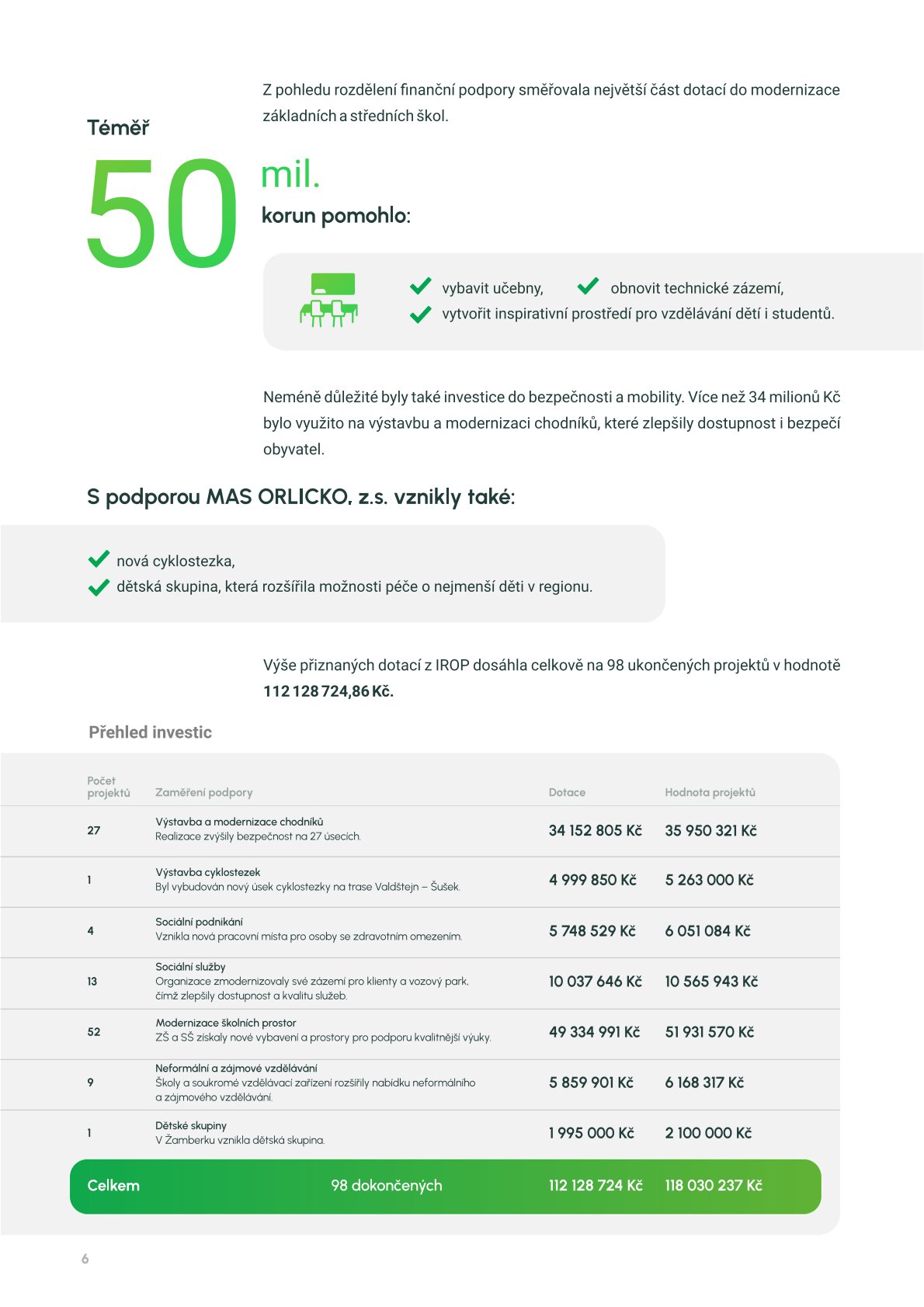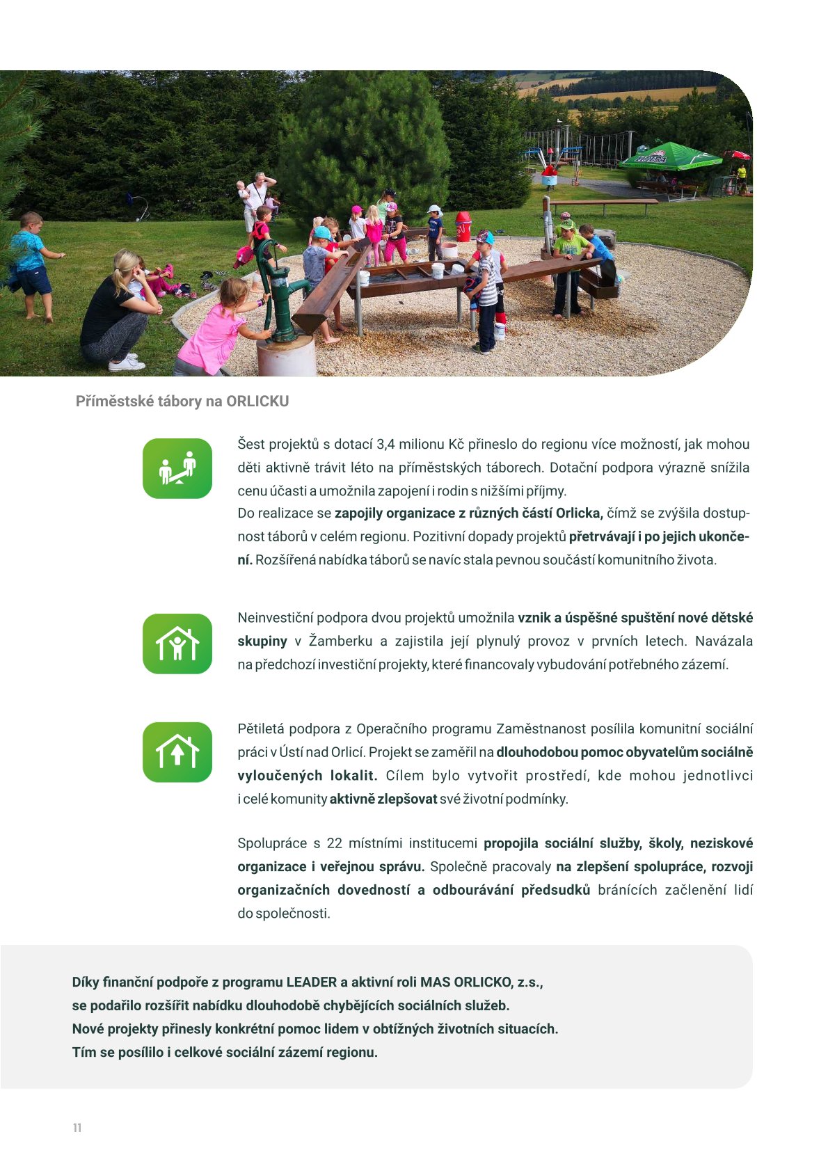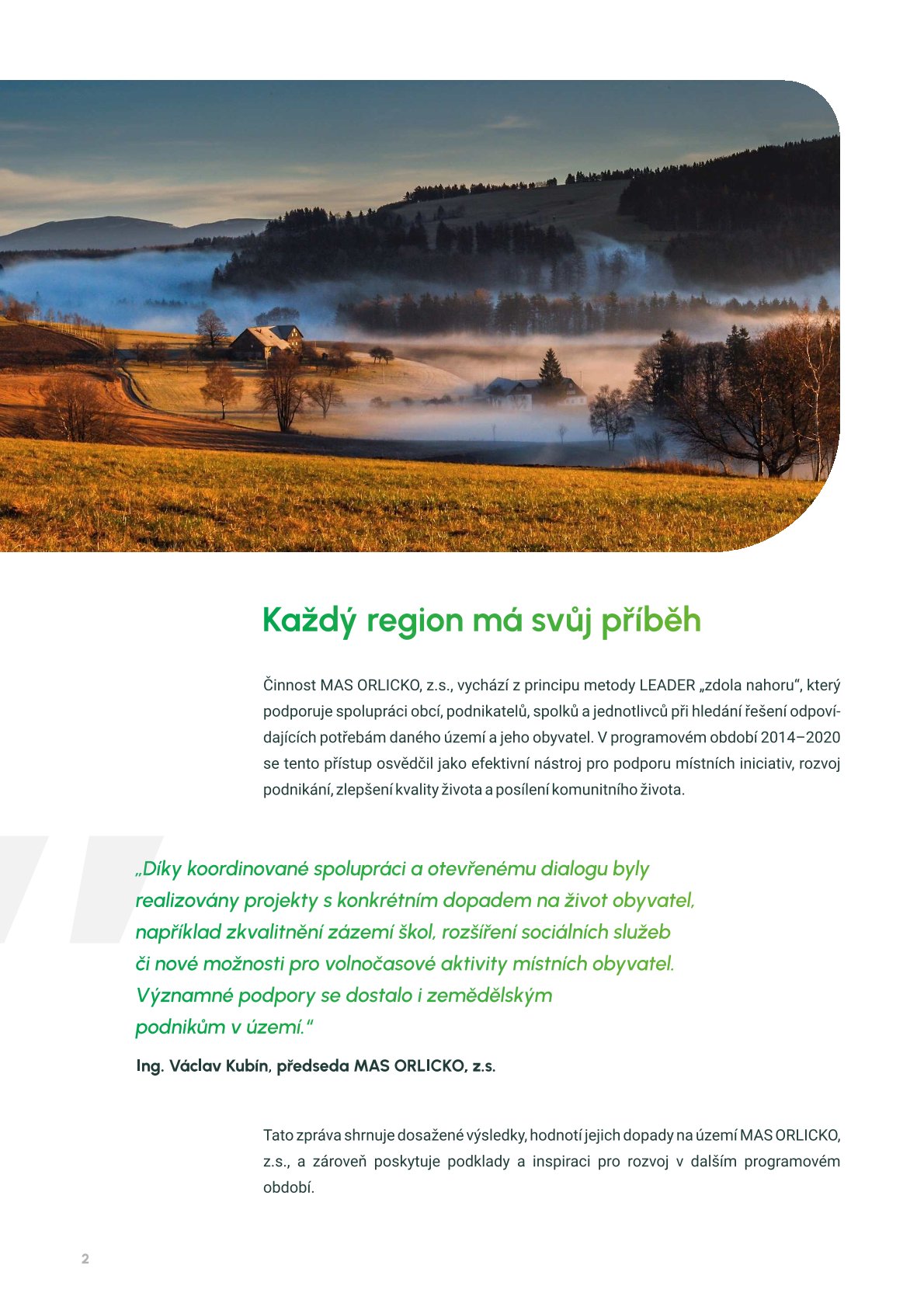 Představujeme zprávu Zhodnocení přínosu činnosti MAS ORLICKO s využitím komunitně vedeného místních rozvoje (CLLD) v programovém období 2014–2020. Dokument přináší přehled uskutečněných projektů, jejich dopadů na rozvoj území a zapojení místních aktérů.